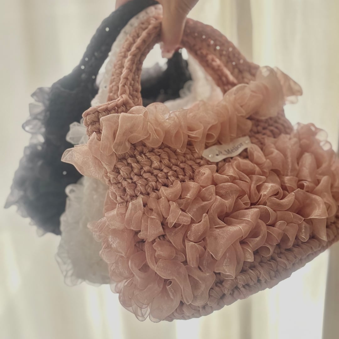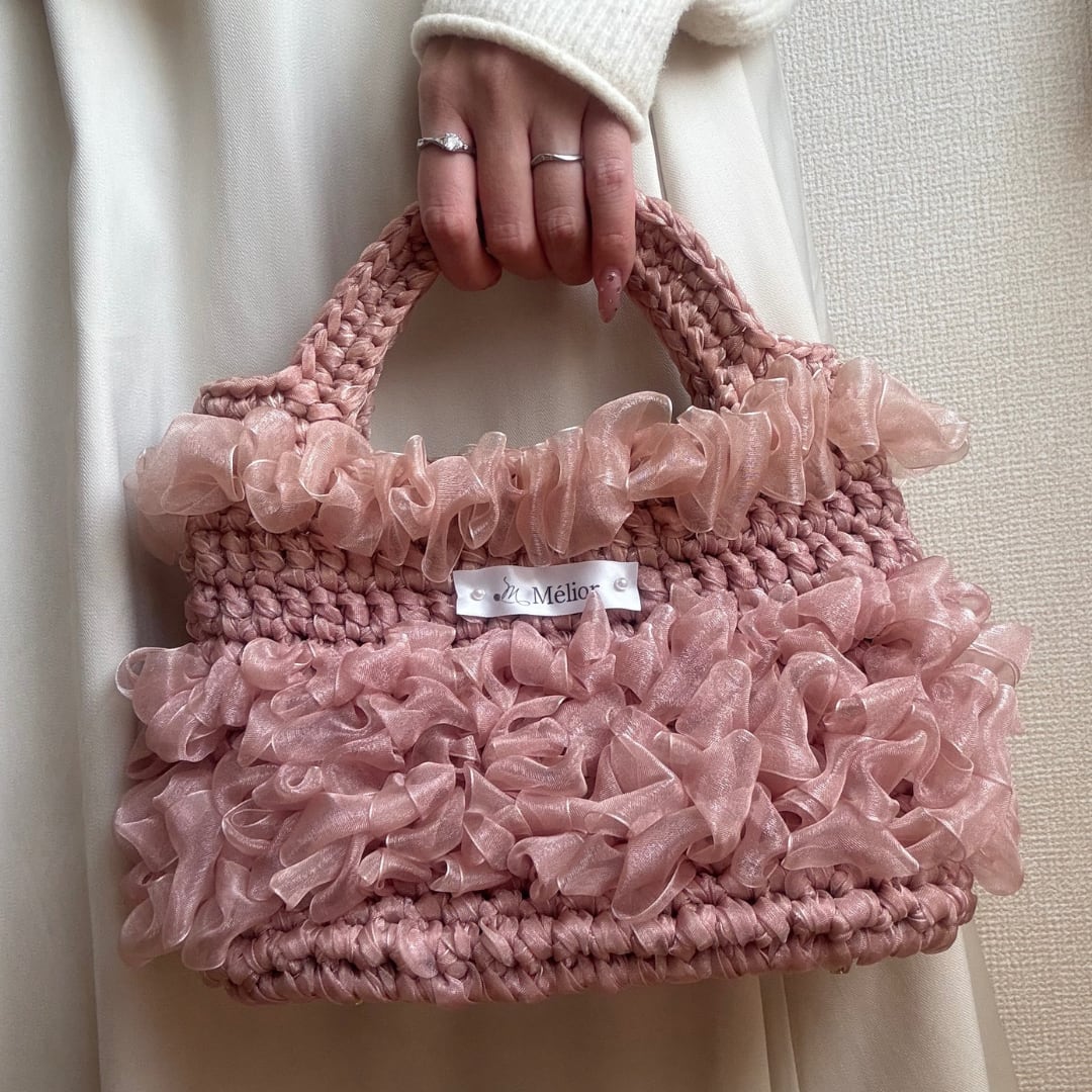 【Mélior】手編みリボンバッグ/ピンク