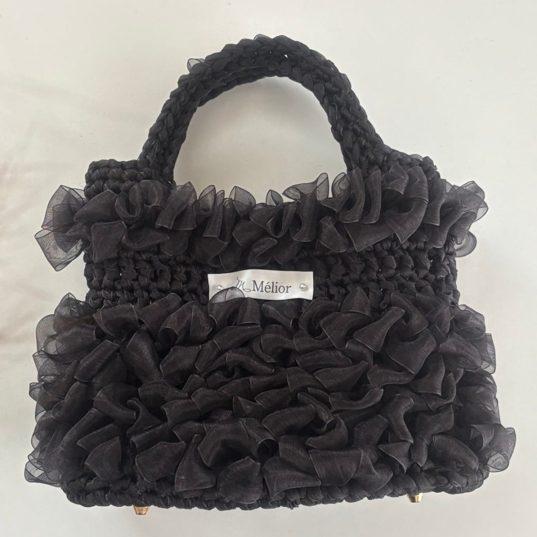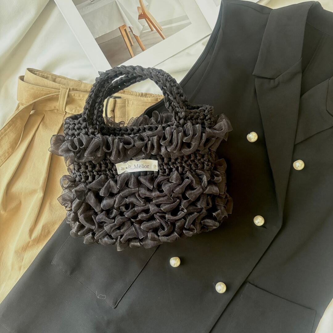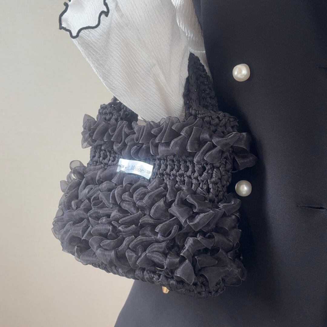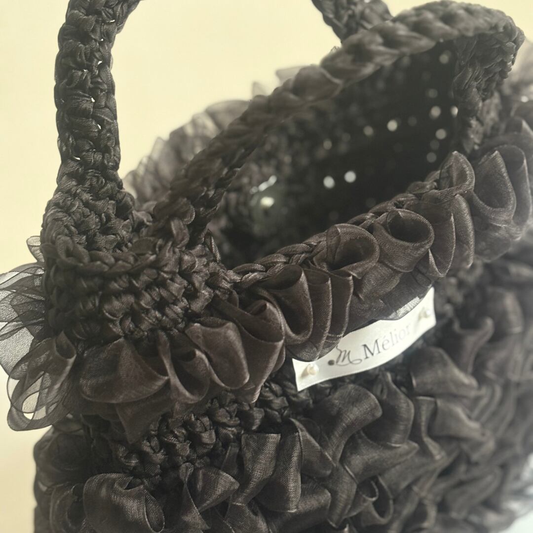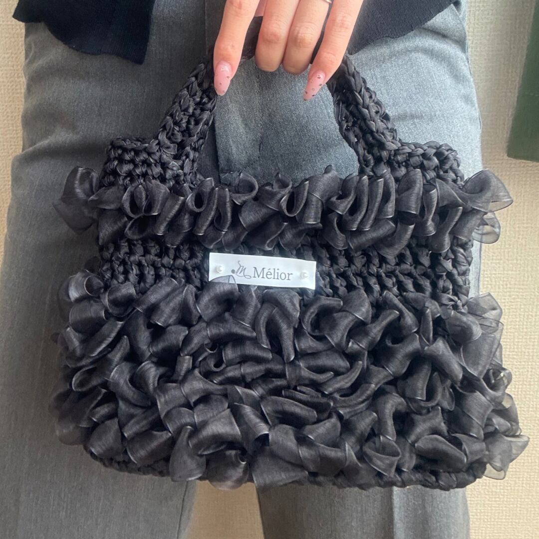 【Mélior】手編みリボンバッグ/ブラック