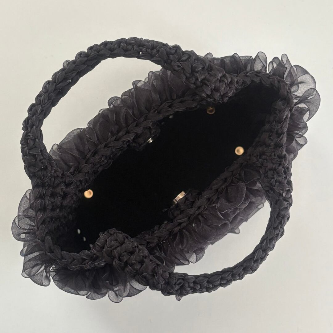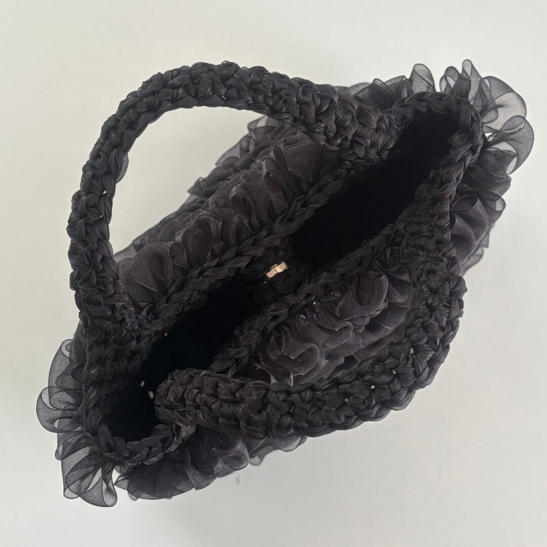 黒のオーガンジーリボンを使用した手編みのハンドバッグ